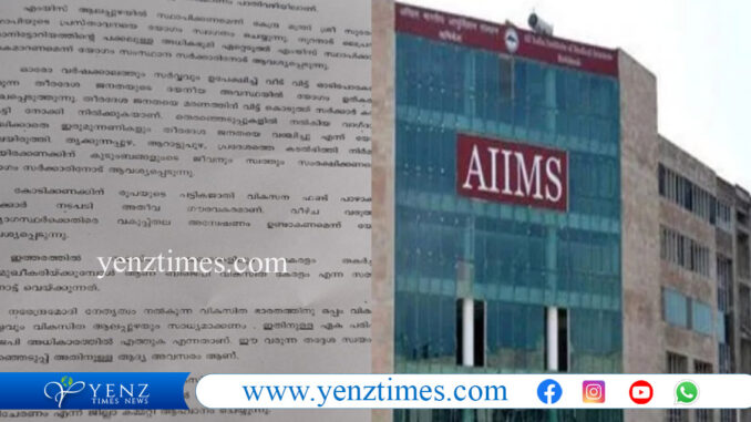 അതേസമയം, എയിംസ് കേരളത്തിൽ എവിടെ വന്നാലും സ്വാഗതം ചെയ്യും എന്നാണ് ബിജെപിയുടെ നിലപാട്. ഓരോ ജില്ലാ കമ്മിറ്റിക്കാരും എവിടെ വേണം എന്ന് ആവശ്യപ്പെടുമെന്നും കേന്ദ്രം അതിൽ തീരുമാനം എടുക്കുമെന്നും എം.ടി. രമേശ് വ്യക്തമാക്കി.