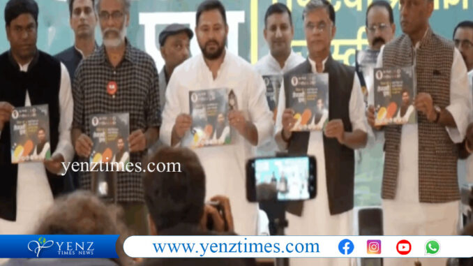 ബിഹാർ നിയമസഭാ തിരഞ്ഞെടുപ്പിൽ മഹാസഖ്യത്തിന്റെ പ്രകടനപത്രിക പുറത്തിറക്കി. ബിഹാറിന് തേജസ്വിയുടെ പ്രതിജ്ഞ എന്ന തലക്കെട്ടോടെയാണ് പ്രകടനപത്രിക ഇറക്കിയിരിക്കുന്നത്. തുല്യ തൊഴിലിന് തുല്യ വേതനം. ഭൂരഹിതർക്കും ഭവനരഹിതർക്കും സ്വന്തമായി ഭൂമിയും വീടും കുറ്റവാളികൾക്ക് അതിവേഗം ശിക്ഷയുറപ്പാക്കും.സ്ത്രീകൾക്കും കർഷകർക്കുമായി പ്രത്യേകം പദ്ധതികൾ നടപ്പാകും.