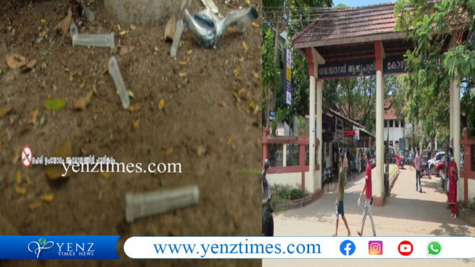 ഇഎൻടി വിഭാഗം ബ്ലോക്കിന് പിന്നിലെ ചുമരിലാണ് സിറിഞ്ച് ഉപയോഗത്തിന് ശേഷമുളള ചോരപ്പാടുകൾ നിറഞ്ഞിരിക്കുന്നത്. രാത്രിയാകുമ്പോൾ ആശുപത്രി പരിസരത്തേക്ക് അതിക്രമിച്ച് കയറുന്ന ലഹരി ഉപയോഗിക്കുന്നവർ രോഗികൾക്കും ആശങ്കയാണ്. മെഡിക്കൽ കോളജ് കഴിഞ്ഞാൽ ഏറ്റവും കൂടുതൽ സാധാരണക്കാർ ആശ്രയിക്കുന്ന ആശുപത്രികളിൽ ഒന്നാണിത്.