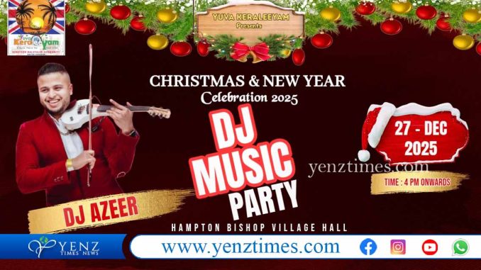 ഹെർഫോർഡ്, യു കെ: യു കെ ഹെർഫോർഡിലെ മലയാളീ കൂട്ടായ്മയായ യുവകേരളീയം സംഘടിപ്പിക്കുന്ന ക്രിസ്മസ് ന്യൂഇയർ ആഘോഷം ഡിസംബർ 27ന് നടക്കും. ഹെർഫോർഡ് ഹാംപ്ടൺ ബിഷപ്പ് വില്ലേജ് ഹാളിൽ വൈകുന്നേരം 4മണിക്ക് ആഘോഷങ്ങൾക്ക് തുടക്കം കുറിക്കും.