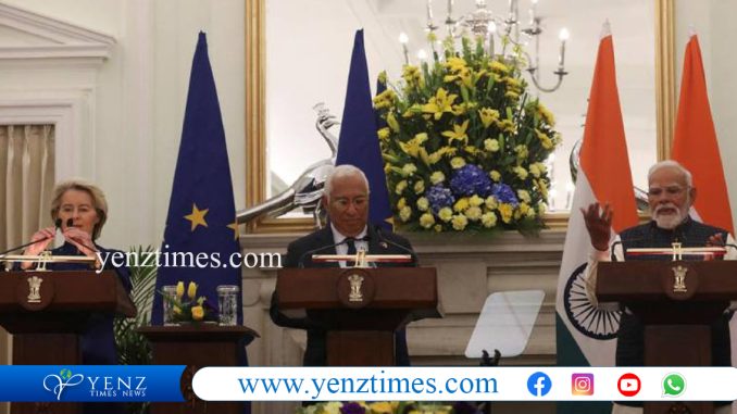 നിർണായകമായ സ്വതന്ത്രവ്യാപാര കരാറിൽ ഒപ്പുവച്ച് ഇന്ത്യയും യൂറോപ്യൻ യൂണിയനും. ഡൽഹിയിലെ ഉച്ചകോടിയ്ക്ക് ശേഷമാണ് വ്യാപാര-സുരക്ഷാ കരാറുകളിൽ ഇരു കക്ഷികളും ഒപ്പുവച്ചത്. പുതുയുഗത്തിന് തുടക്കമെന്നായിരുന്നു പ്രധാനമന്ത്രി നരേന്ദ്രമോദിയുടെ പ്രതികരണം. ചരിത്രമുഹൂർത്തമെന്ന് യൂറോപ്യൻ യൂണിയൻ നേതാക്കൾ പറഞ്ഞു.