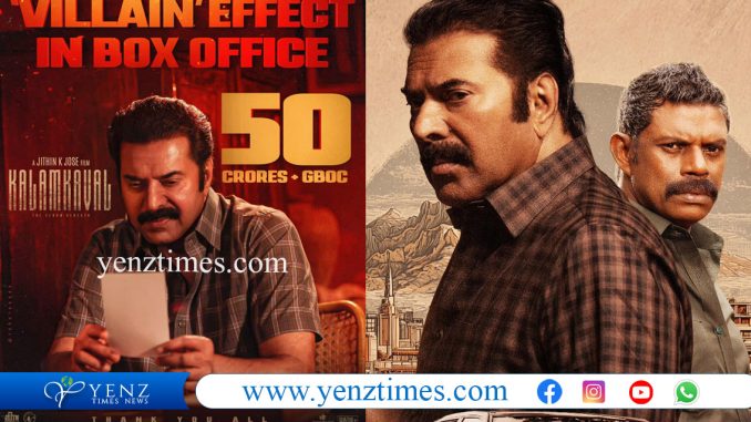 മമ്മൂട്ടി, വിനായകൻ എന്നിവരെ കേന്ദ്ര കഥാപാത്രങ്ങളാക്കി ജിതിൻ കെ. ജോസ് സംവിധാനം നിർവഹിച്ച കളങ്കാവൽ 50 കോടി ക്ലബിൽ. റിലീസ് ചെയ്ത് നാലു ദിനം കൊണ്ടാണ് ചിത്രം ആഗോള ഗ്രോസ് ആയി 50 കോടി പിന്നിട്ടത്. ഏറ്റവും വേഗത്തിൽ 50 കോടി ക്ലബിൽ ഇടം പിടിച്ച മമ്മൂട്ടി ചിത്രമെന്ന റെക്കോർഡും ഇതിലൂടെ കളങ്കാവൽ സ്വന്തമാക്കി. ഭീഷ്മപർവം, കണ്ണൂർ സ്ക്വാഡ്, ഭ്രമയുഗം, ടർബോ എന്നീ ചിത്രങ്ങൾക്ക് ശേഷം 50 കോടി ക്ലബിൽ ഇടം പിടിച്ച മമ്മൂട്ടി ചിത്രം കൂടിയാണ് കളങ്കാവൽ. ജിഷ്ണു ശ്രീകുമാറും ജിതിൻ കെ ജോസും ചേർന്ന് തിരക്കഥ രചിച്ച കളങ്കാവൽ, മമ്മൂട്ടി കമ്പനിയുടെ ബാനറിൽ നിർമ്മിച്ച ഏഴാമത്തെ ചിത്രം കൂടിയാണ്. വേഫറെർ ഫിലിംസ് കേരളത്തിൽ വിതരണം ചെയ്ത ചിത്രം, ഓവർസീസ് ഡിസ്ട്രിബൂഷൻ നടത്തിയത് ട്രൂത് ഗ്ലോബൽ ഫിലിംസ് ആണ്. കുപ്രസിദ്ധമായ സയനൈഡ് മോഹൻ കേസിൽ നിന്ന് പ്രചോദനം ഉൾക്കൊണ്ട് ഒരുക്കിയ ചിത്രം ആദ്യാവസാനം പ്രേക്ഷകരെ ത്രില്ലടിപ്പിച്ചു കൊണ്ടാണ് തകർപ്പൻ വിജയം നേടുന്നത്.