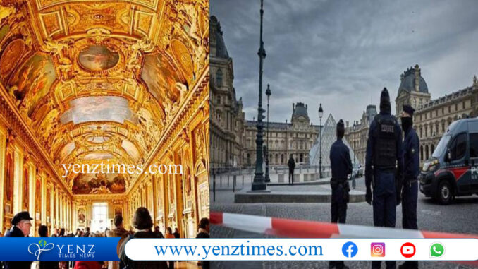 മോഷണത്തെത്തുടർന്ന് ഞായറാഴ്ചമുഴുവൻ ലൂവ്ര് അടച്ചിട്ടു. പ്രാദേശികസമയം രാവിലെ ഒൻപതിന് (ഇന്ത്യൻസമയം ഉച്ചയ്ക്ക് ഒന്ന്) മ്യൂസിയം തുറന്ന് അരമണിക്കൂർ പിന്നിട്ടപ്പോഴായിരുന്നു മോഷണം. അപ്പോളോ ഗാലറിയിൽ പ്രദർശിപ്പിച്ചിരുന്ന വസ്തുക്കളാണ് കള്ളന്മാർ കൊണ്ടുപോയതെന്ന് ഫ്രഞ്ച് ആഭ്യന്തരമന്ത്രി ലോറന്റ് നൂനെസ് പറഞ്ഞു. റീജന്റ്, സാൻസി, ഹൊർടെൻഷ്യ എന്നീ പേരുകളിലുള്ള മൂന്ന് വൈരക്കല്ലുകളാണ് കിരീടം കൂടാതെ ഇവിടുള്ളത്. പാരീസ് പൊലീസ് ആസ്ഥാനത്തിന് 800 മീറ്റർ മാത്രം അകലെയാണ് ലൂവ്ര് മ്യൂസിയം.