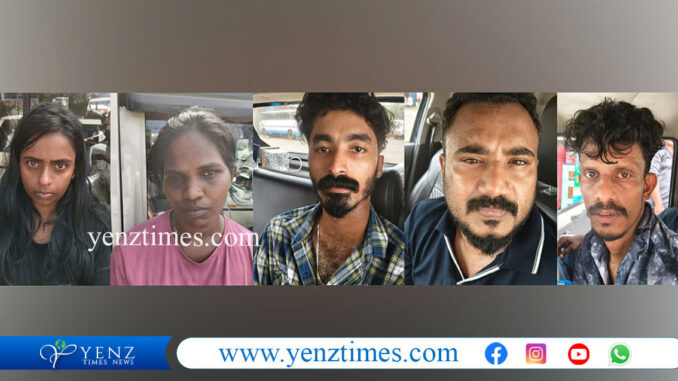 കോട്ടയം വൈക്കം നടുവിൽ സ്വദേശിനി ഓതളത്തറ വീട്ടിൽ വിദ്യ (33), കോട്ടയം വൈക്കം സ്വദേശിനി അഞ്ചുപറ വീട്ടിൽ ശാലിനി (31) എന്നിവരാണ് എംഡിഎംഎയുമായി എത്തിയത്. കയ്പമംഗലം ചളിങ്ങാട് സ്വദേശികളായ വൈപ്പിൻ കാട്ടിൽ വീട്ടിൽ ഷിനാജ് (33), ആനക്കൂട്ട് വീട്ടിൽ അജ്‌മൽ (35), കടവിൽ അജ്മൽ (25) എന്നിവരാണ് വാങ്ങാൻ വന്നത്. ഇവരിൽ നിന്നു അഞ്ച് ലക്ഷത്തോളം രൂപ വില വരുന്ന 58 ഗ്രാം എംഡിഎംഎ പിടിച്ചെടുത്തു.