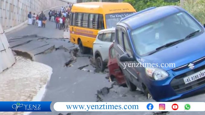 വാഹനങ്ങൾ കടന്നു പോകുന്നതിനിടെയാണ് റോഡിൽ വിള്ളലുണ്ടായത്. ഇന്നലെ വൈകുന്നേരമാണ് സംരക്ഷണഭിത്തി ഇടിഞ്ഞ് താഴ്ന്ന് അപകടം സംഭവിച്ചത്. സ്കൂൾ ബസ് ഉൾപ്പെടെ നാല് വാഹനങ്ങൾ അപകടത്തെ തുടർന്ന് സർവീസ് റോഡിൽ കുടുങ്ങിയിരുന്നു.