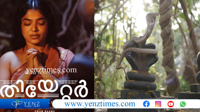റിമ കല്ലിങ്കല്ലിനെ പ്രധാന കഥാപാത്രമാക്കി സജിൻ ബാബു സംവിധാനം ചെയ്യുന്ന ‘തിയേറ്റർ: ദി മിത്ത് ഓഫ് റിയാലിറ്റി’ ഒക്ടോബർ 16ന് തിയേറ്ററുകളിലേക്ക് എത്തുകയാണ്. രാജ്യാന്തര ചലച്ചിത്രമേളകളിലെ പ്രദർശനത്തിന് ശേഷം തിയറ്റർ റിലീസിനെത്തുന്ന ചിത്രത്തിന്റെ ചില ഞെട്ടിക്കുന്ന ദൃശ്യങ്ങൾ പുറത്തു വിട്ടിരിക്കുകയാണിപ്പോൾ സംവിധായകൻ. സിനിമയുടെ ചിത്രീകരണ വേളയിൽ ലൊക്കേഷനായ സർപ്പക്കാവിലേക്ക് എത്തിയ യഥാർത്ഥ സർപ്പത്തിന്റെ വീഡിയോയാണ് സംവിധായകൻ പുറത്തു വിട്ടിരിക്കുന്നത്. വിശ്വാസങ്ങൾ, ആചാരങ്ങൾ, മിത്ത് എന്നിവയുമായൊക്കെയായി ബന്ധപ്പെട്ട് പുറത്തിറക്കിയ ചിത്രത്തിൽ സർപ്പക്കാവും ഒരു പ്രധാന ലൊക്കേഷനാണ്. അതിനായി സംവിധായകന്റെ നേതൃത്വത്തിൽ ആർട്ട് ഡയറക്ടർ നിർമ്മിച്ച താൽക്കാലിക സർപ്പക്കാവിലേക്കാണ് സർപ്പം വന്നത്. ഇതൊരു അത്ഭുതകരമായ സംഭവമായാണ് പലരും ഇതിനെപ്പറ്റി സൂചിപ്പിക്കുന്നത്.