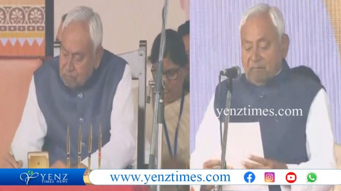 ബിഹാർ മുഖ്യമന്ത്രിയായി പത്താം തവണയും നിതീഷ് കുമാർ സത്യപ്രതിജ്ഞ ചെയ്ത് അധികാരമേറ്റു. ഗവർണർ ആരിഫ് മുഹമ്മദ് ഖാൻ ആണ് സത്യപ്രതിജ്ഞ വാചകം ചൊല്ലി കൊടുത്തത്. ഉപ മുഖ്യമന്ത്രിയായി സാമ്രാട്ട് ചൗധരി സത്യപ്രതിജ്ഞ ചെയ്തു. പാറ്റ്നയിലെ ഗാന്ധി മൈതാനത്ത് വെച്ചാണ് ചടങ്ങുകള് നടന്നത്. പ്രധാനമന്ത്രി നരേന്ദ്ര മോദി, അമിത് ഷാ, ജെ പി നദ്ദ, കേന്ദ്രമന്ത്രിമാരായ രാജ്നാഥ് സിംഗ്, ധർമ്മേന്ദ്ര പ്രധാൻ ഏഴ് സംസ്ഥാനങ്ങളിലെ മുഖ്യമന്ത്രിമാരും ചടങ്ങിൽ പങ്കെടുത്തു.
