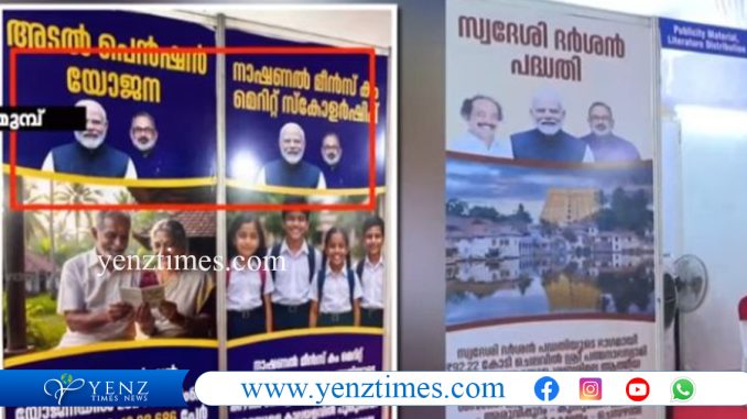 ഇന്നലെയാണ് ബിജെപിയുടെ സംസ്ഥാന കമ്മിറ്റി ഓഫീസായ മാരാര്ജി ഭവില് എന്ഡിഎയുടെ തിരഞ്ഞെടുപ്പ് കമ്മിറ്റി ഓഫീസ് ഉദ്ഘാടനം ചെയ്തത്. ഉദ്ഘാടന വേളയില് കാണുന്ന ചിത്രങ്ങളില് പ്രധാനമന്ത്രി നരേന്ദ്രമോദി, രാജീവ് ചന്ദ്രശേഖര്, മുന് സംസ്ഥാന അധ്യക്ഷന്മാരായ കുമ്മനം രാജശേഖരന്, സികെ പത്മനാഭന്, വി മുരളീധരന്, കെ സുരേന്ദ്രന് അടക്കമുള്ള നേതാക്കളുടെ ചിത്രങ്ങളും കേന്ദ്രമന്ത്രിമാരുമുണ്ട്. എന്നാല് അത് ഉണ്ടാക്കുന്ന സമയത്ത് അങ്ങനെ ആയിരുന്നില്ല. ആദ്യം നിര്മിച്ച സമയത്ത് രാജീവ് ചന്ദ്രശേഖറിന്റെയും പ്രധാനമന്ത്രിയുടേയും ചിത്രങ്ങള് മാത്രമായിരുന്നു ഉണ്ടായിരുന്നത്.