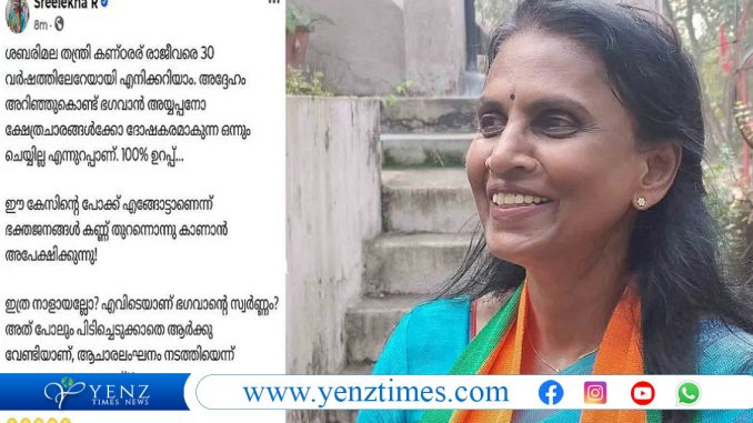 കേസിന്റെ പോക്കില് ഉള്പ്പെടെ സംശയം പ്രകടപ്പിക്കുന്ന നിലയിലായിരുന്നു പോസ്റ്റ്. കേസിന്റെ പോക്ക് എങ്ങോട്ടാണെന്ന് ഭക്തജനങ്ങള് കണ്ണ് തുറന്നൊന്നു കാണാന് അപേക്ഷിക്കുന്നു. അന്വേഷണം ആരംഭിച്ച് നാളുകളായിട്ടും എവിടെയാണ് ഭഗവാന്റെ സ്വര്ണ്ണം? അത് പോലും പിടിച്ചെടുക്കാതെ ആര്ക്കു വേണ്ടിയാണ്, ആചാരലംഘനം നടത്തിയെന്ന് പറഞ്ഞുള്ള ഈ അറസ്റ്റ് എന്നുമായിരുന്നു പോസ്റ്റിലെ ഉള്ളടക്കം.