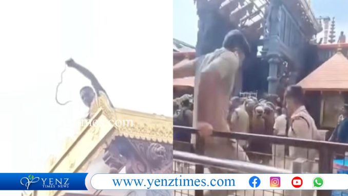 ശബരിമല സന്നിധാനത്ത് പാമ്പിനെ പിടികൂടി; പതിനെട്ടാംപടിക്ക് സമീപത്തെ റൂഫിനു മുകളിൽ പച്ചില പാമ്പ്