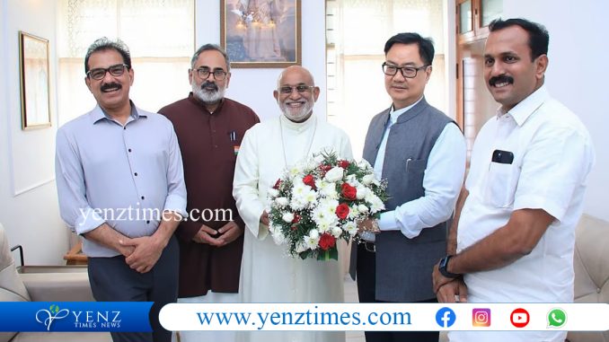 കൊച്ചി: നിയമസഭ തെരഞ്ഞെടുപ്പില് ക്രിസ്ത്യന് സഭകളെ കൈയിലെടുക്കാനുള്ള നടപടികളുമായി ബിജെപി. ഇതിന്റെ ഭാഗമായി കേന്ദ്ര ന്യൂനപക്ഷ ക്ഷേമവകുപ്പ് മന്ത്രി കിരണ് റിജിജു കൊച്ചിയിലെത്തി സിറോ മലബാര് സഭ ആര്ച്ച് ബിഷപ്പ് മാര് റാഫേല് തട്ടിലുമായി കൂടിക്കാഴ്ച നടത്തി. സഭാ ആസ്ഥാനമായ സെന്റ് തോമസ് മൗണ്ടില് വെച്ചായിരുന്നു ചര്ച്ച.